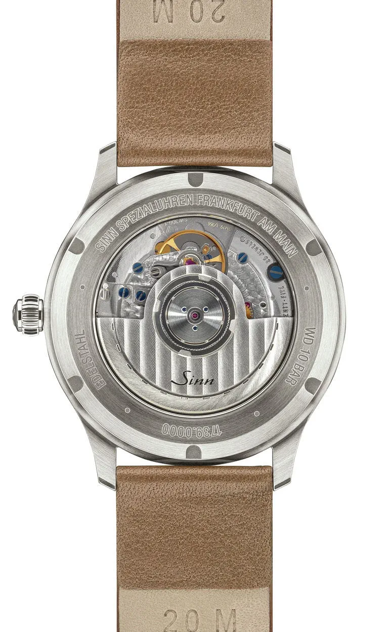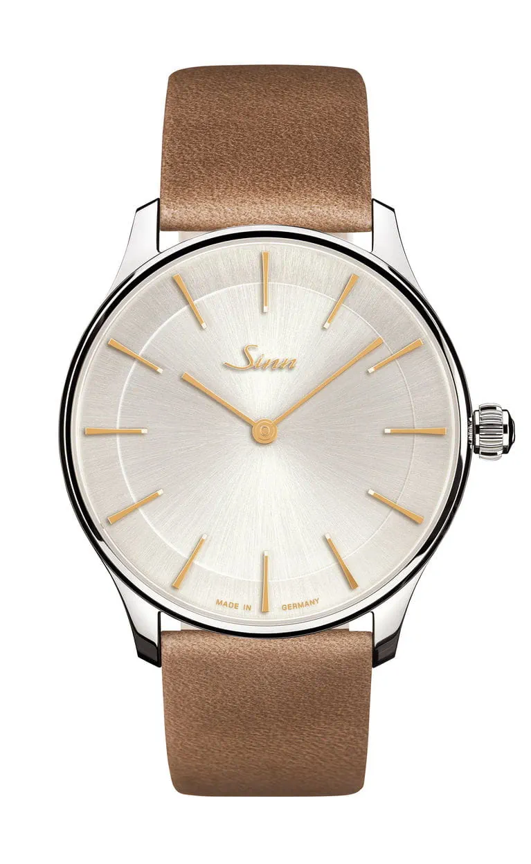 Ponadczasowy, klasyczny design umiejętnie inkorporujący elementy poprzednich stylów, odwołujący się do tradycji, został jeszcze udoskonalony lekko wypukłym szkłem szafirowym najwyższej jakości. Wspomniane detale stanowią definicję i charakterystykę ogólnego wyglądu tego wyjątkowego zegarka Sinn o średnicy 39 mm.