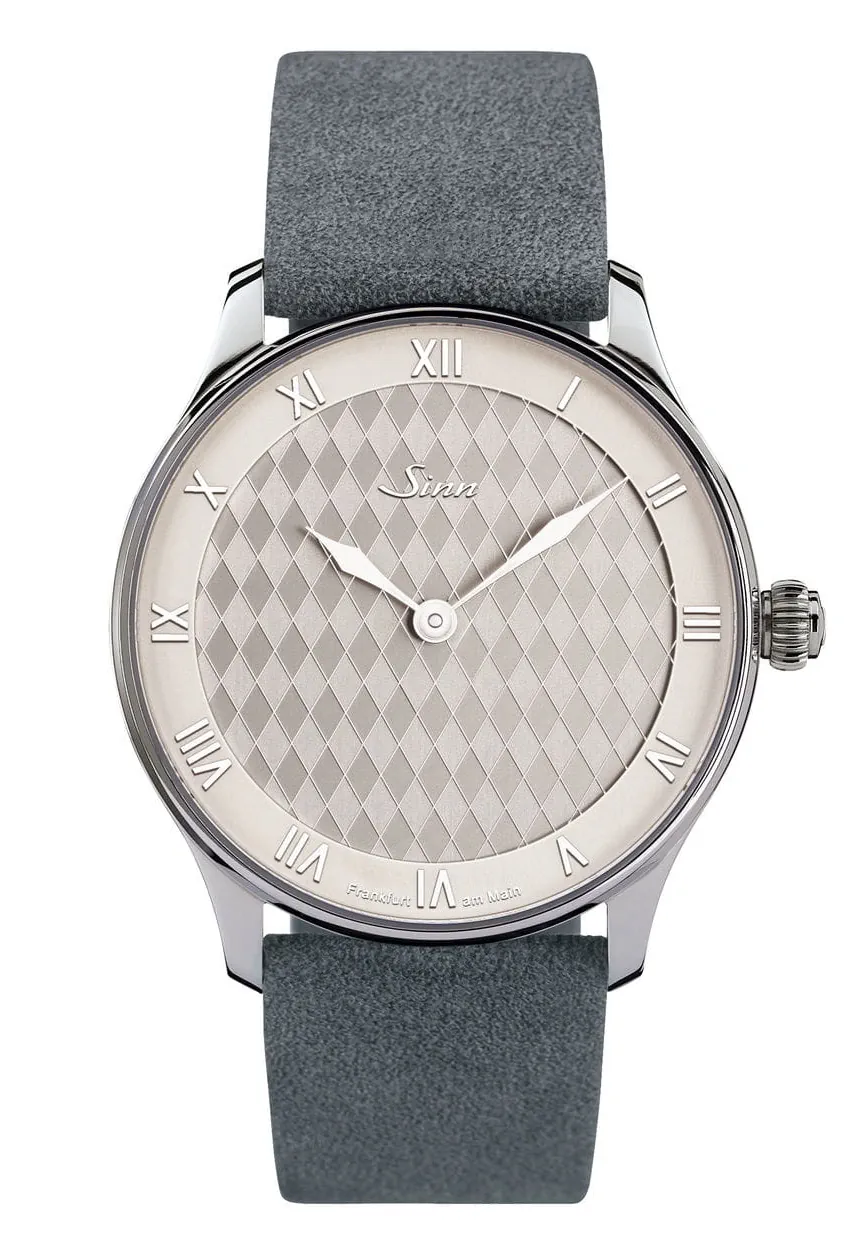 Zegarek Sinn 1746 Heimat jest naszym hołdem złożonym miastu. Ekstremalnie cienka tarcza z reliefem pokrytym rodem została zainspirowana tradycyjnym wzorem diamentowym popularnych szklanek do cydru, znanych również jako Gerippte. Trójwymiarowy wzór w romby tworzy niezwykle żywą grę świateł i cienia na owych szklankach.