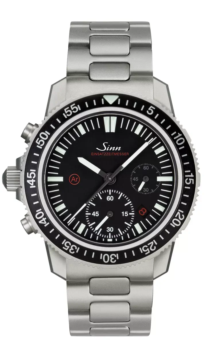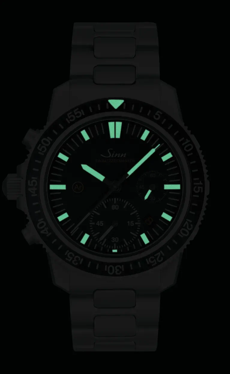 EZM 13.1 tym samym dokładnie wie, co liczy się podczas użytku: koncentracja na kluczowych, zasadniczych sprawach pod względem czytelności. W tym celu zintegrowaliśmy fabryczną modyfikację o wysokofunkcjonalnej wartości z mechanizmem chronografu SINN SZ02. Aby umożliwić szybki i intuicyjny odczyt płynącego czasu EZM 13.1 zawiera 60-minutowy licznik na godzinie 6. zamiast używanego zazwyczaj 30-minutowego licznika. Wyróżnia go zoptymalizowany design tarczy. Aby zwiększyć czytelność, arabskie cyfry zostały w EZM 13.1 pominięte. To dodatkowe, optyczne usprawnienie technicznej funkcjonalności.