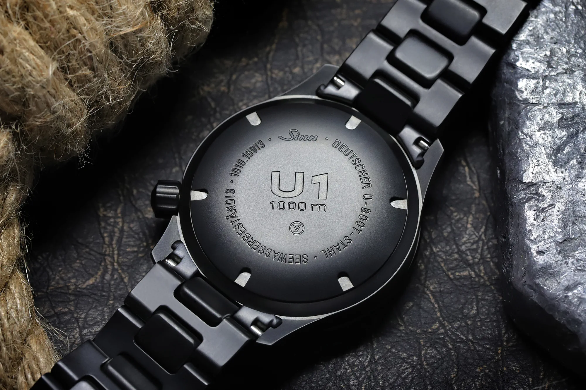 Koperta i koronka U1 S zostały wykonane z potężnej, niemieckiej stali z łodzi podwodnych. Materiał jest ekstremalnie odporny na morską wodę oraz do najwyższego stopnia antymagnetyczny. Dzięki temu, że nurkowy bezel z minutami został umieszczony wewnątrz koperty, jest praktycznie niemożliwe, żeby został oderwany po uderzeniu.