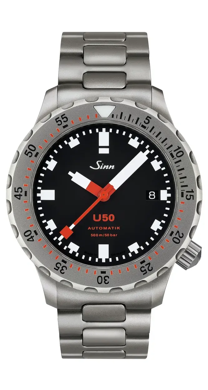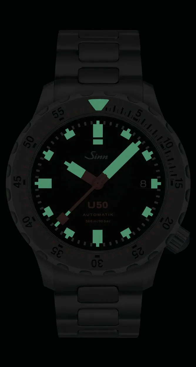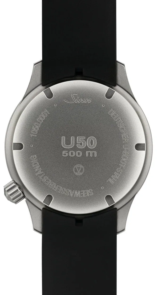 Od strony wizualnej zegarek nurkowy U50 wyróżnia imponująca czarna, matowa tarczą z wyświetlaczem zawierającym tylko konieczne elementy. Cechy zegarka to także spójny zbiór zalet marki SINN. Koperta i koronka są wyprodukowane z solidnej i odpornej na wodę morską stal submarine używaną w łodziach podwodnych oraz wyposażone w technologię TEGIMENT. Tę stal wyróżnia nie tylko wyjątkowo duża wytrzymałość, ale i niespotykane cechy antymagnetyczne oraz odporność na słoną wodę. Bezel został zaprojektowany w taki sposób, że jest osadzony na stałe w kopercie. Ze względu na możliwe duże przeciążenia podczas użytkowania, wzmocniliśmy jego powierzchnię przy pomocy technologii TEGIMENT, czyniąc go wyjątkowo odpornym na rysy.