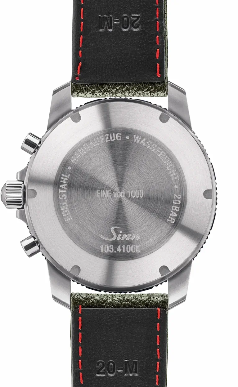 Kolejna komplikacja - skala tachometru na wewnętrznym bezelu - powinna zaspokoić potrzebę koneserów zegarków, aby ręcznie i precyzyjnie mierzyć prędkość w przedziale pomiędzy 60 a 600 km/h. Odporność na niskie ciśnienie, wodoodporność i odporność na ciśnienie do 20 bar gwarantują wysoki poziom funkcjonalności w codziennym użytkowaniu. Ostatecznie ten model 103 jest szlachetnym przedstawicielem istniejącej od dawna serii renomowanych zegarków Sinn i również ze względu na limitację do 1000 sztuk stanie się pożądanym przedmiotem kolekcjonerskim.
