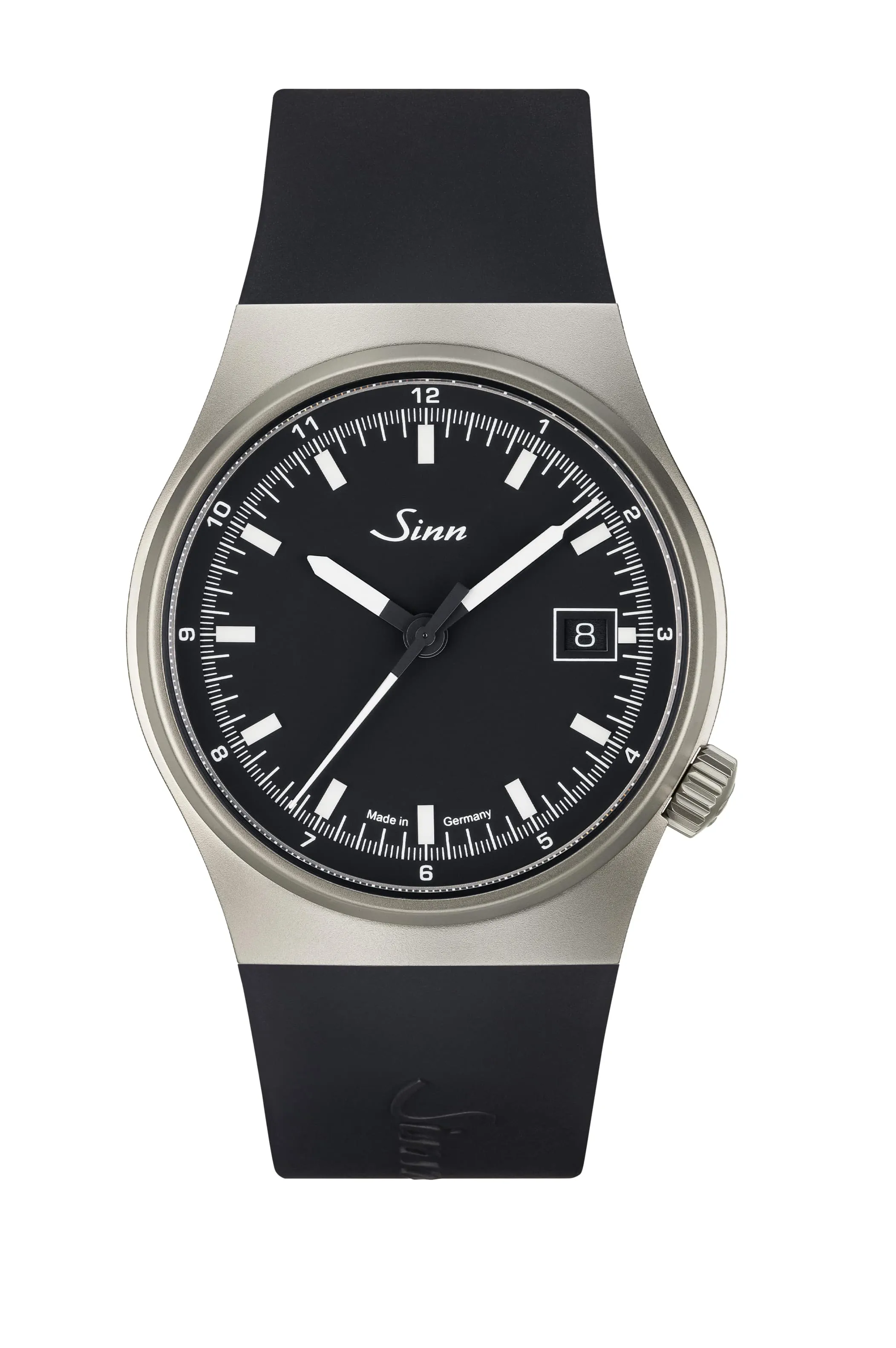 Bransoleta: dwuogniwowa stal nierdzewna (two-link) z mikroregulacją; piaskowana. Silikonowy: Czarny silikonowy pasek zintegrowany z kopertą. Skórzany: skóra bydlęca zintegrowana z kopertą; czarny z białym, kontrastującym szwem.
