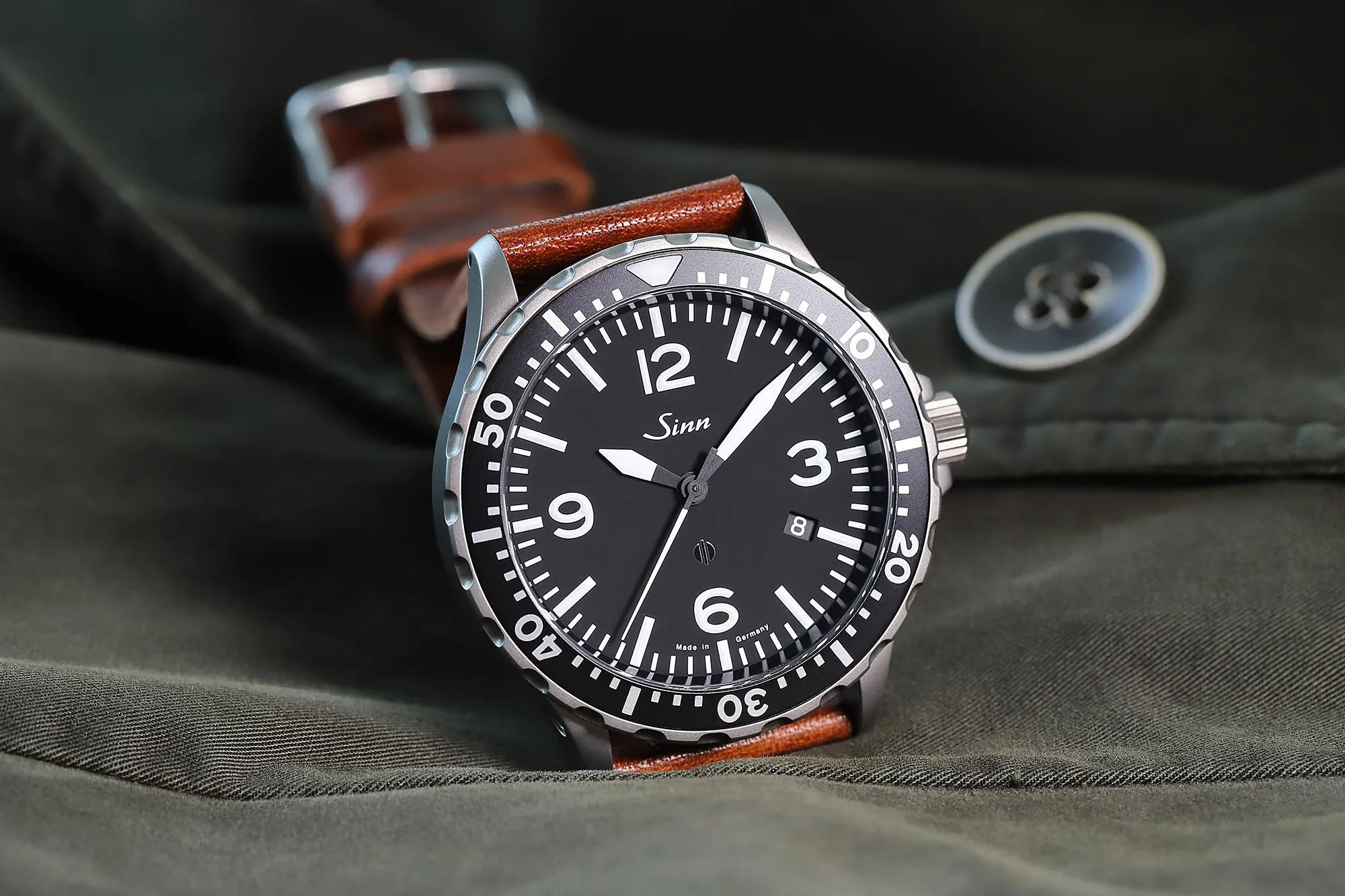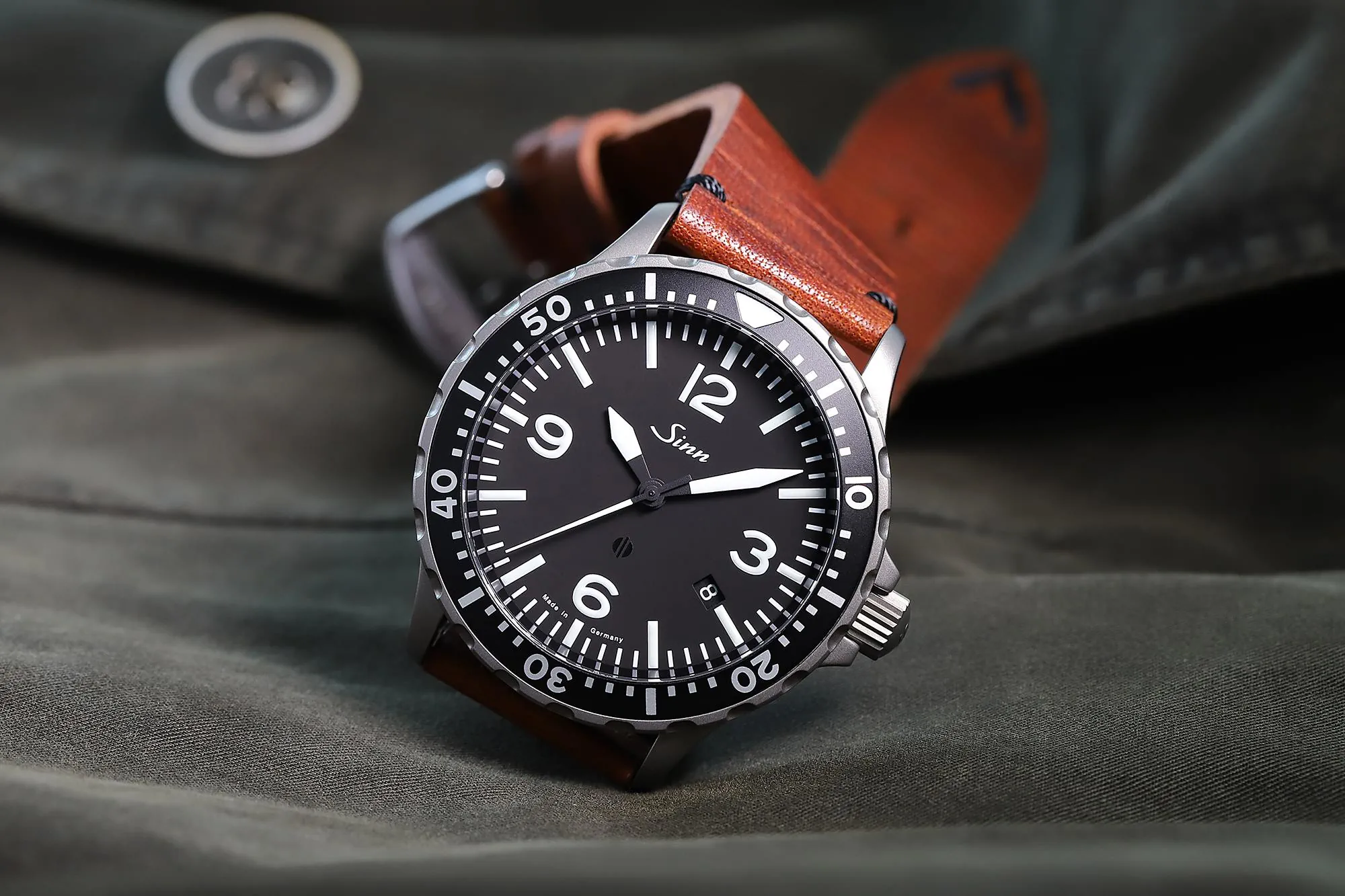 Bezel pilota ze stali nierdzewnej odmierzający minuty może obracać się w obie strony i charakteryzuje się specjalnym, mechanicznym systemem stworzonym przez Sinna, aby zapobiegać jego zgubieniu. Tak samo jak materiał koperty, podstawa bezela jest hartowana technologią TEGIMENT. Oznaczenia na czarnym, anodyzowanym wkładzie pierścienia z aluminium są srebrne, żeby zapewnić optymalną czytelność skali. Świecący trójkąt służy jako wskazanie w przedziale od 0 do 60 minut. Lotniczy bezel zegarka Sinn obraca się w obu kierunkach i klika pewnie, wydając słyszalny dźwięk, przesuwając się na kolejne minuty.