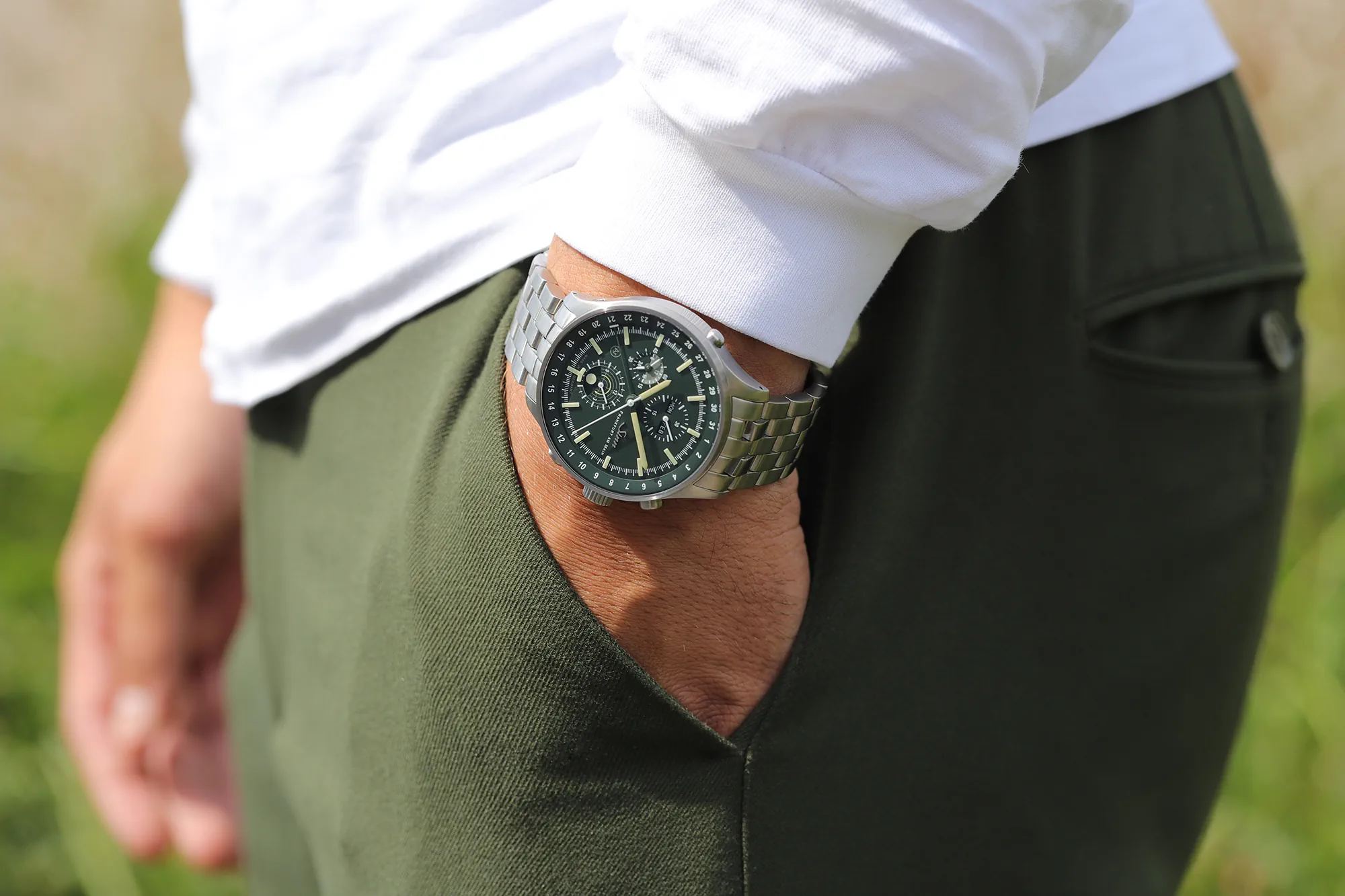 Chronograf z wyświetlaczem światła księżyca