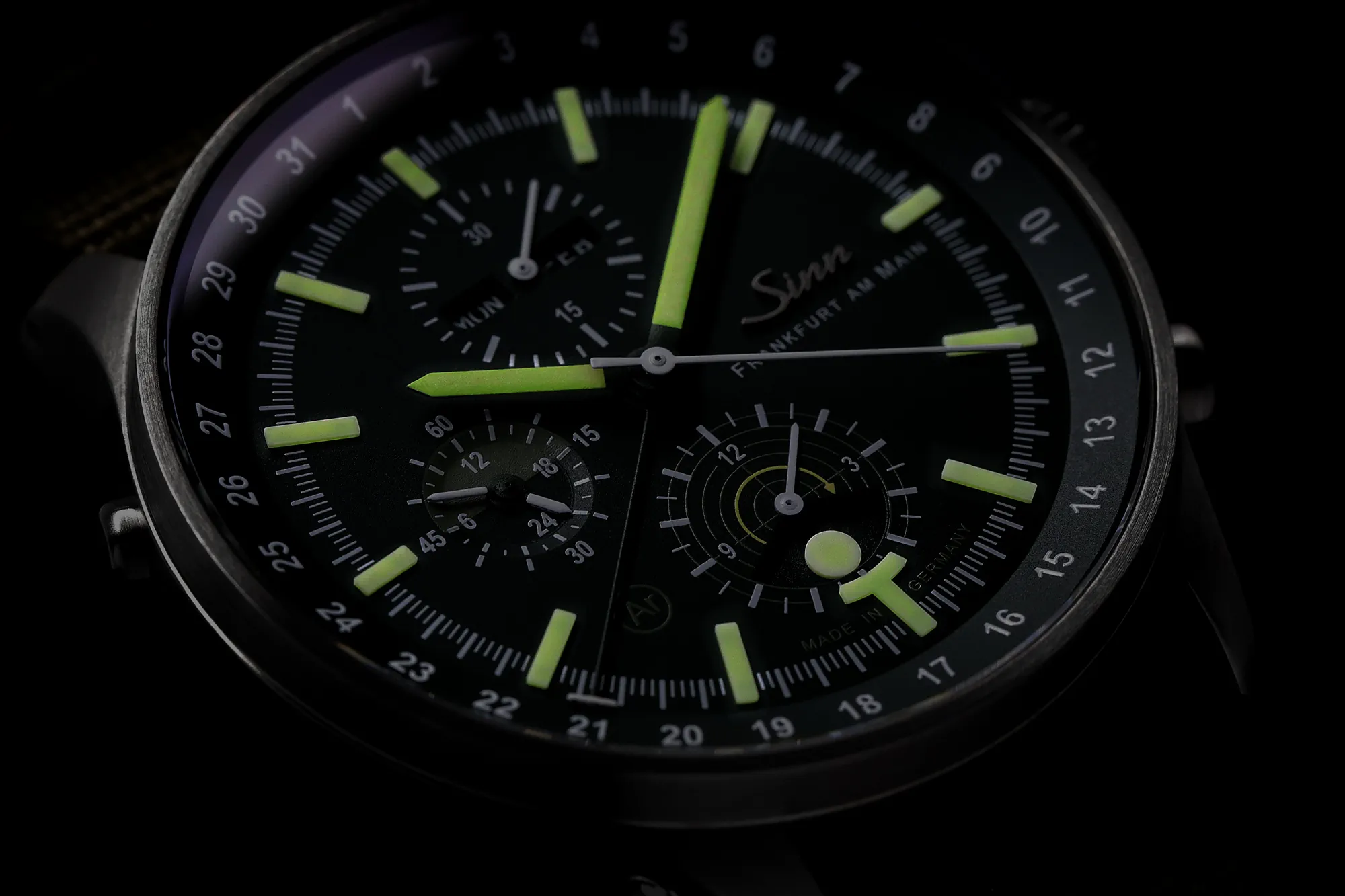 Tropienie w świetle księżyca z zegarkiem Sinn HUNTING WATCH 3006. HUNTING WATCH 3006 jest pierwszym naszym zegarkiem z tą nadzwyczajną komplikacją. Wyświetlacz światła księżycowego został celowo umieszczony na godzinie 6, ze świecącym symbolem księżyca, aby był łatwy do zobaczenia, nawet w ciemności. Oto historia, jaka stoi za tą dodatkową funkcją: myśliwi potrzebują nie tylko czystego, otwartego widoku, aby ich polowanie zakończyło się sukcesem; potrzebują również odpowiedniego światła. Myśliwi określają dobre oświetlenie do tropienia jako "światło dobrych łowów". Niemieckie myśliwskie prawo federalne (Bundesjagdgesetz) zakazuje polowania przy użyciu sztucznych źródeł światła. Aby móc polować na zezwolony rodzaj zwierzyny w nocy, muszą panować adekwatne, naturalne warunki oświetlenia przez księżycowe światło. Wyświetlacz światła księżycowego w Sinn HUNTING WATCH 3006 pokazuje, czy światło księżyca jest wystarczająco jasne, by podjąć łowy.